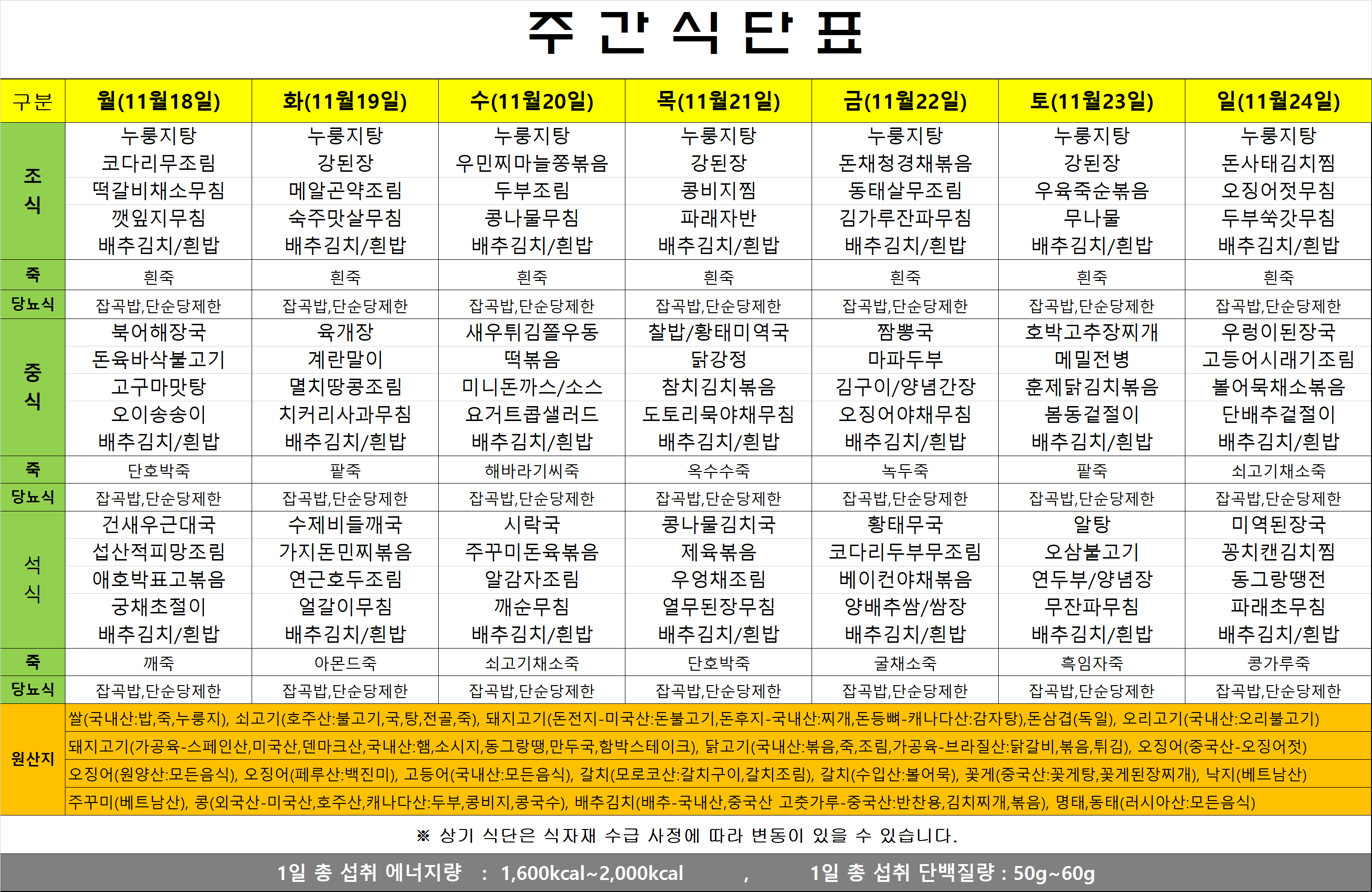 식단표(24.11.18~11.24)