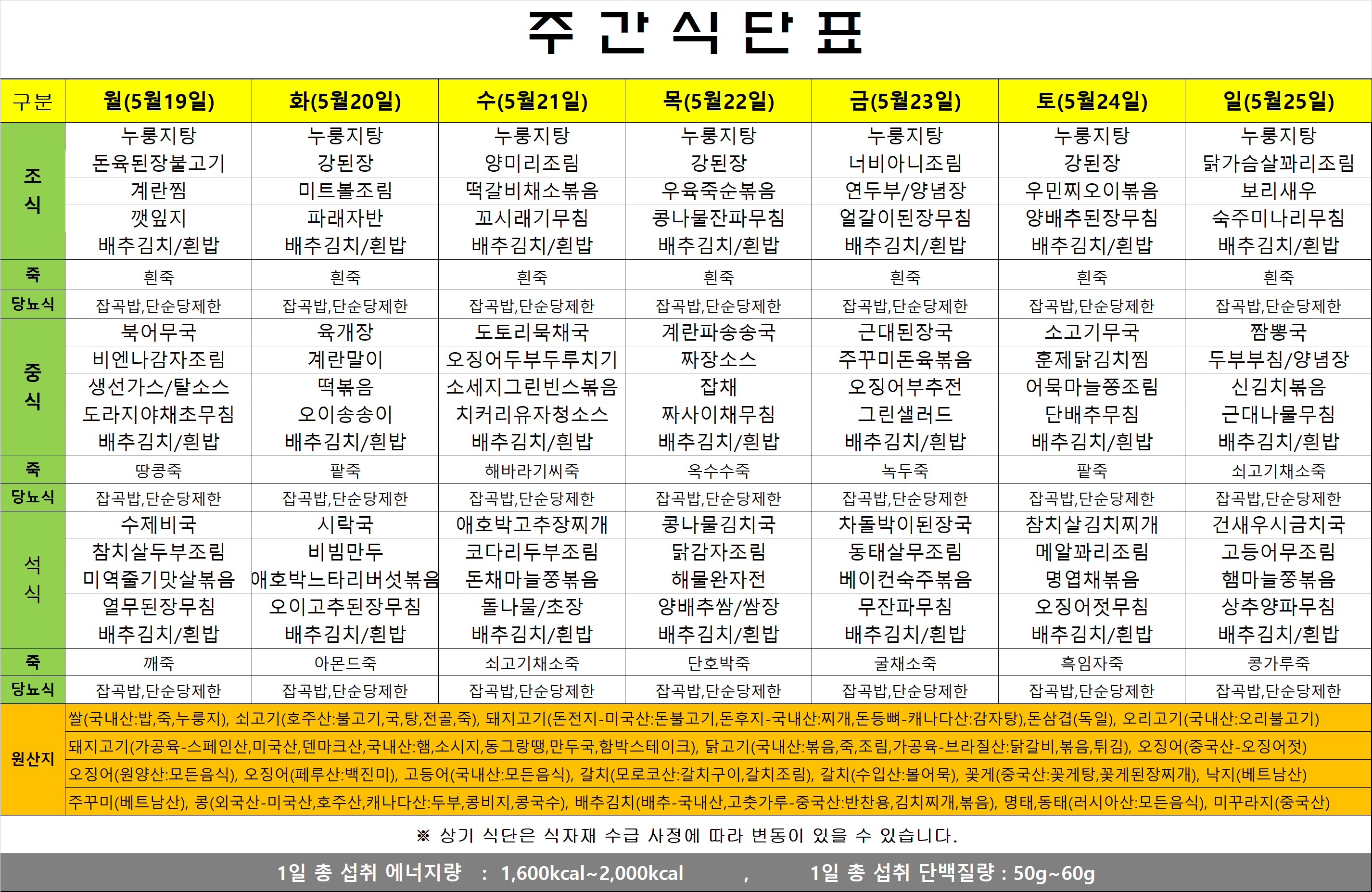 식단표(25.05.19~05.25)