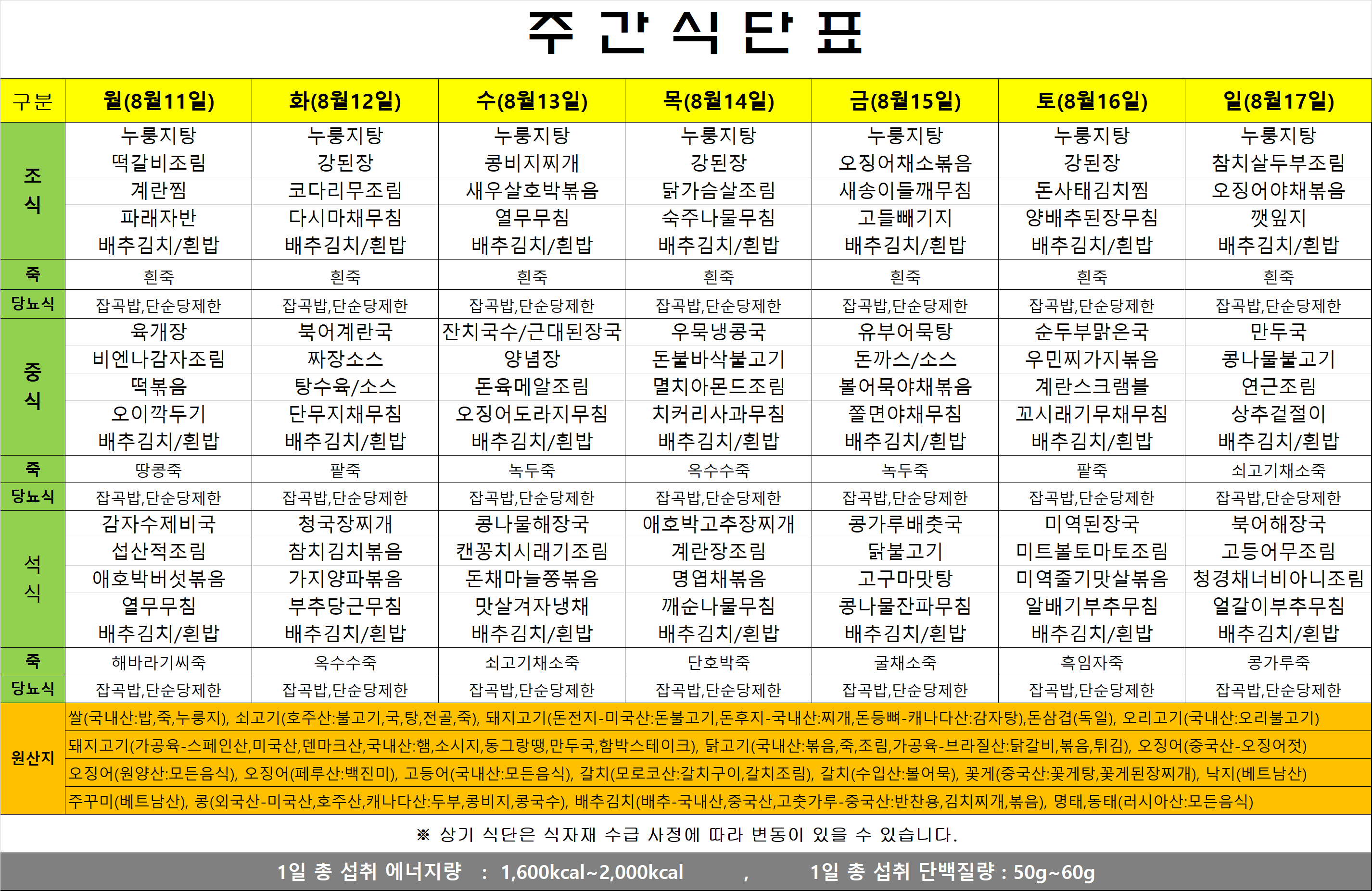 식단표(25.08.11~08.17)