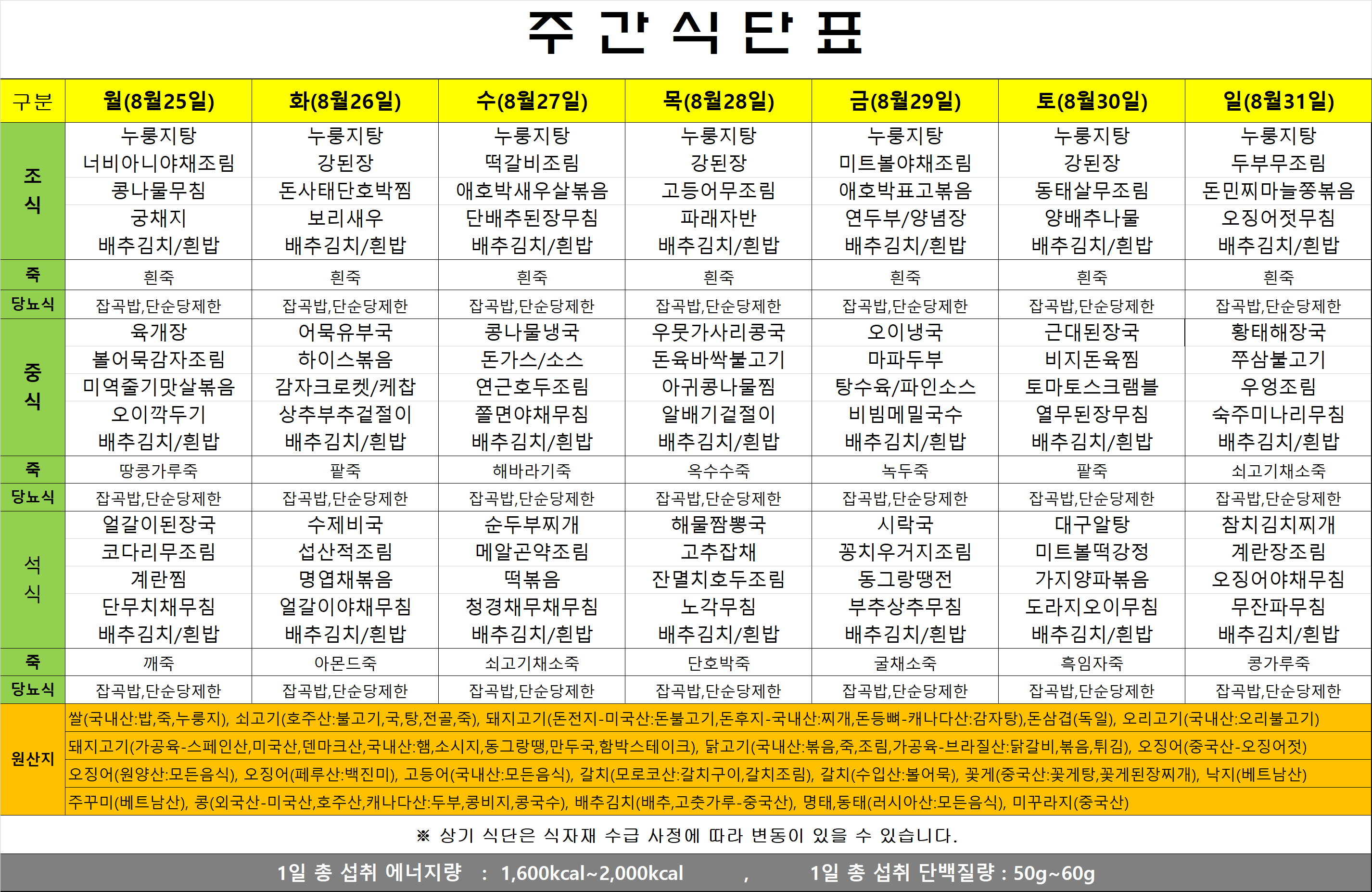 식단표(25.08.25~08.31)