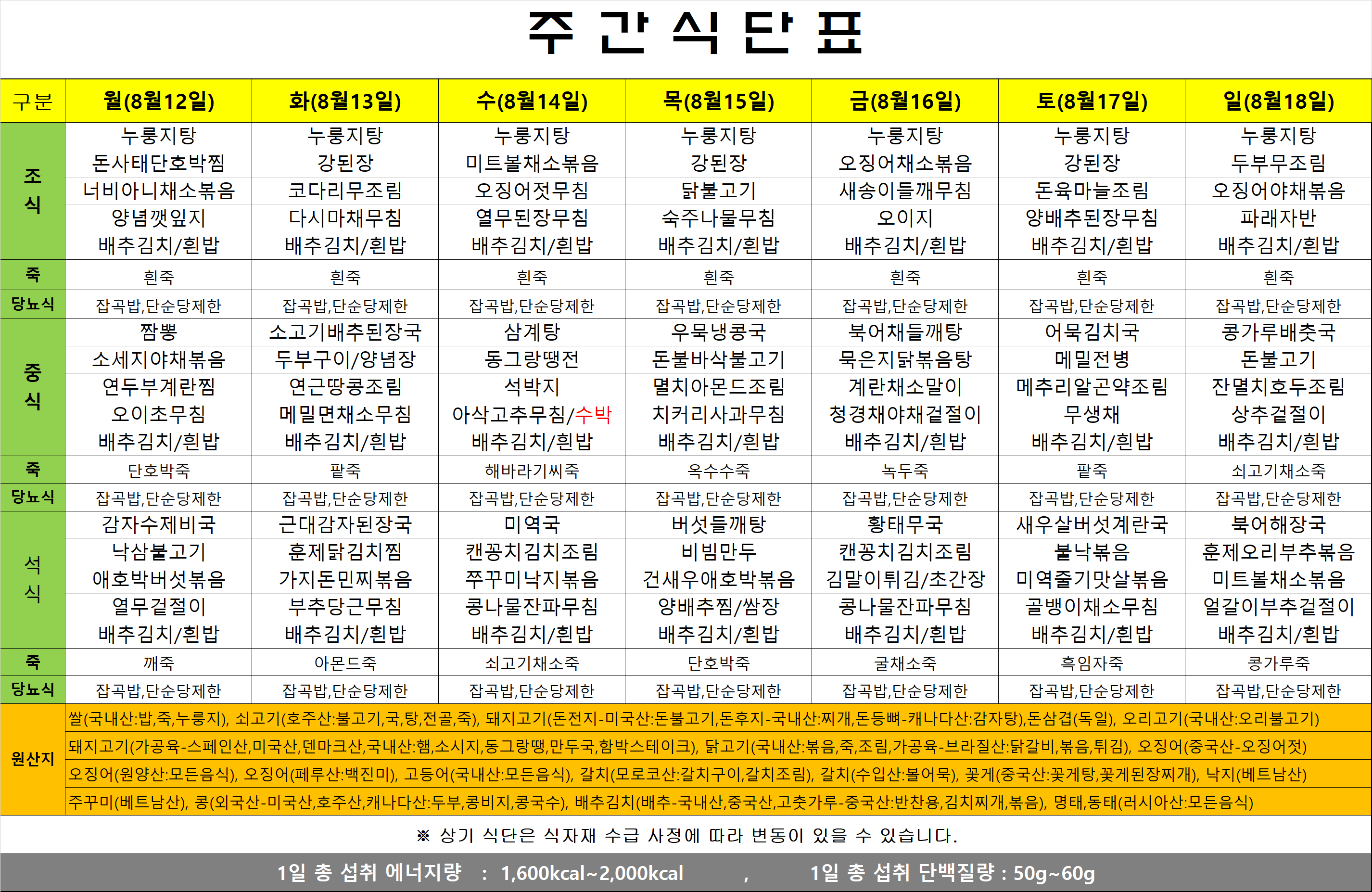 식단표(24.08.12~08.18)
