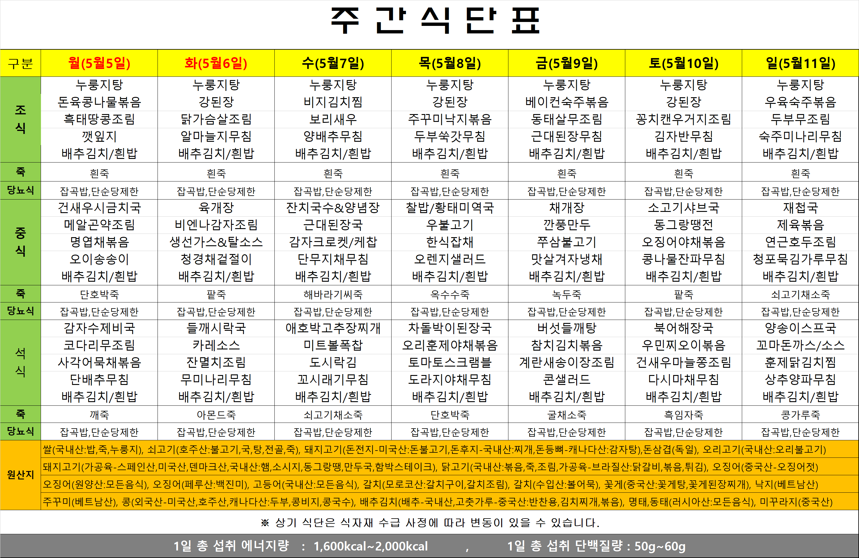 식단표(25.05.05~05.11)